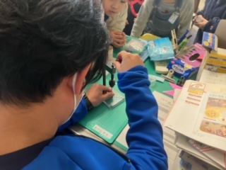 機械で穴を開けてくれている先生は、一人で大変そうです…