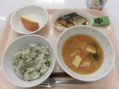 【献立】ごはん・さばのソース煮・みそ汁・りんご・牛乳