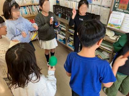 7人チームで、歌いながら打楽器でリズムを取る学習でした。