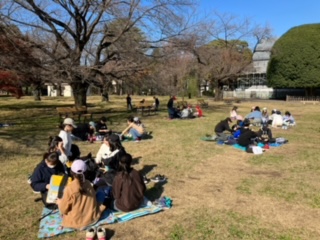 空には雲ひとつなく、暖かい陽射しの中、芝生でいただきます♪