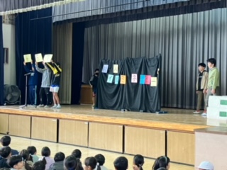 集会委員会の5.6年生が考えたゲームをみんなで楽しみました。