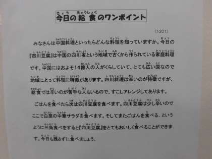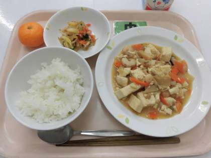 【献立】ごはん・四川豆腐・白菜の中華サラダ・牛乳