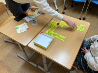 このゲームを先生とやりながら、ルールを守ったり、思った通りにいかない時の気持ちの切り替えを学んでいました。