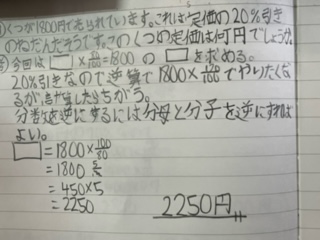 1800円で売られている靴。これは、定価の80%の値段。定価はいくら?