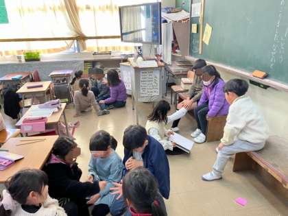 私はお姉さん、と言う物語を読んで、グループで思ったことを話し合っていました。実際に弟や妹がいる子の話も出て、盛り上がっていました。