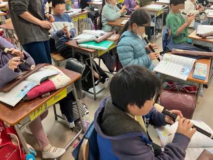 みんな一生懸命にリコーダーの練習をしていました。3年生から始まったリコーダーですが、みんなずいぶんきれいな音色を奏でられるようになっています。
