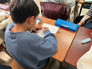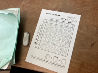 かけ算九九の百ます計算を頑張っていました。早い子は、なんと70秒足らずで100マスを完成させていました。すごい!