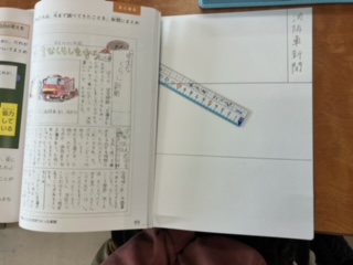 消防設備について学習したことを、新聞形式にまとめていました。そう言えば、3年生はここ最近、学校内にある消火器や警報装置、煙探知機などを探す活動をしていました。