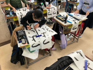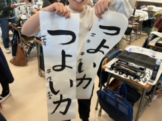 書初めの練習をしていました。これは、冬休みの宿題にもなり、休み中に家で練習をすることになります。休み明け、校内書初め会が待っています。