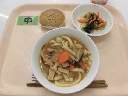 【献立】ちゃんこうどん・和風サラダ・紅茶ケーキ・牛乳
