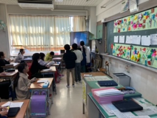 クラスでお楽しみ会。こちらは、自作のお話をスライドに映して、読み聞かせをしていました。