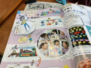 「穴の向こうはふしぎなせかい」という単元の作品作りでした。画用紙に穴を開けて、自分のミニチュアを作り、作品にしていきます。さてさて、どんな不思議な世界が描けるかな?