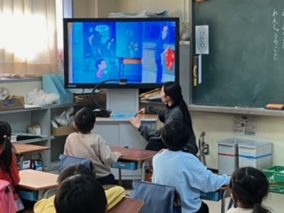 絵本の読み聞かせをしていました。先生がテレビモニターに映し出して、絵本を読んでいました。子どもたちは、その世界に引き込まれていました。