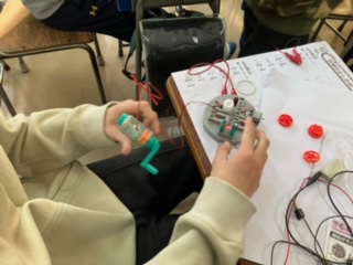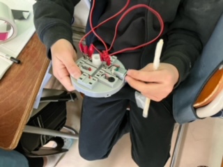 発電の装置で電気を作ることにチャレンジしていました。電球に明かりを灯すのは、なかなか難しいようでしたが、みんなよく頑張っていました。