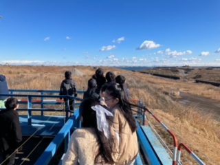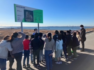 少しだけバスから降りて、東京湾の景色を見学できました。富士山、羽田飛行場、千葉県の山並み、ディズニーランドなど、全部が見えました。