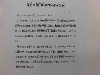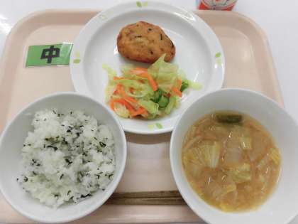【献立】わかめごはん・手作りさつまあげ・野菜のひとしお・みそ汁・牛乳