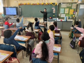 新しく習う漢字の書き順を教わっていました。王様の「王」という文字。
