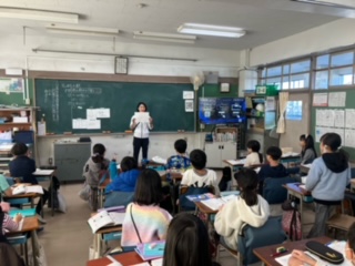小数の引き算の学習をしていました。4人の子が、それぞれの考えを画用紙にまとめ、発表していました。