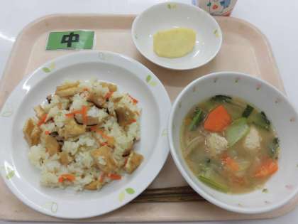 【献立】こぎつねずし・肉団子入りみそ汁・りんご・牛乳