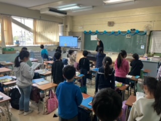 先生の伴奏に合わせて、元気よく歌っていました。楽しい気持ちになって、休み時間にも口ずさんでいます。