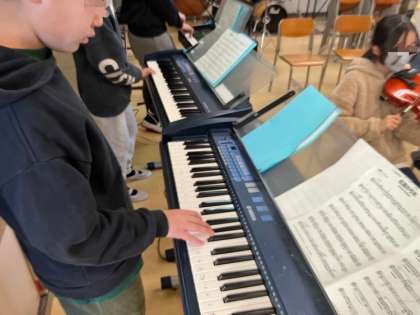 ?六年生を送る会で披露する合奏の練習に励んでいます。6年生は、この時期お休みが多いですが、それぞれ自分の担当の楽器の練習を頑張っています♪