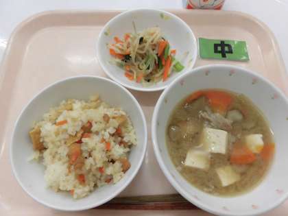 【献立】こぎつねごはん・おひたし・さつま汁・牛乳