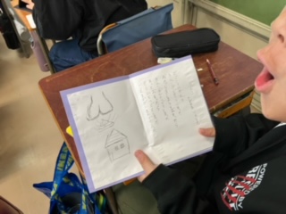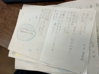 ?国語の学習で、詩集を作りました。自分が選んだ詩を書き写し、絵を描いて貼り合わせて一冊の詩集の出来上がりです。