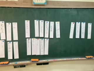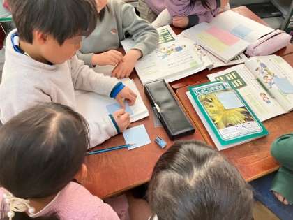 「楽しかったよ 2年生」という単元の学習でした。1年間を振り返って、グループで発表をします。その準備の話し合いをしていました。