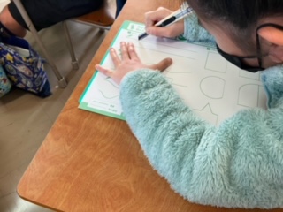 カッターを初めて使った授業でした。正しく、安全にカッターを扱うことができるよう、一つ一つ丁寧に進めていました♪