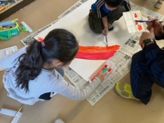 ?6年生を送る会のメッセージパネルの作成でした。大きな紙に、「り」と言う一文字を描くそうです。