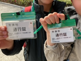 ?これから衆議院の見学です。その前に、通行許可証をいただきました。