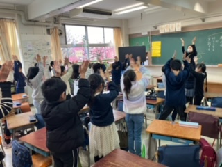 6年生を送る会で披露する出し物の練習をしていました。ボディパーカッションかな?