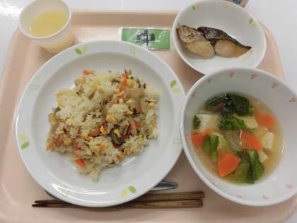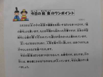 【献立】ちらしずし・鰆の西京焼き・菜花のすまし汁・もものゼリー・牛乳