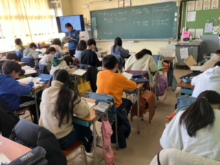 年間の学習内容を振り返りながら、最後のまとめの演習問題を個人で解いていました。