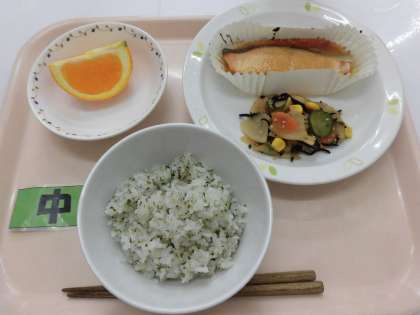 【献立】青のりごはん・魚のみそマヨネーズ焼き・大根とひじきのサラダ