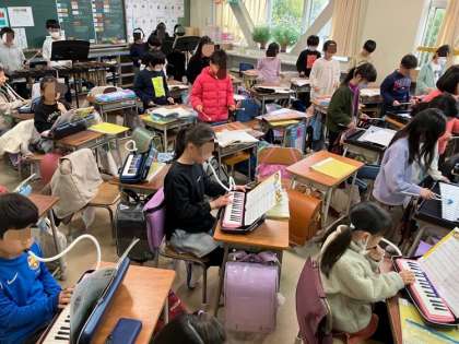 これまで練習してきた「アイアイ」の合奏も、いよいよ完成。交代でいろいろな楽器を担当して、たくさん演奏を楽しみました♪