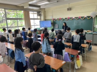 来週、一年生を迎える会があります。その時に、全校の前で合唱を披露します。「ドキドキドン!一年生」です。その練習を教室でしました♪