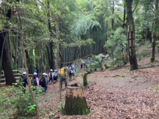 到着しました。林を抜けて、まずは集合場所の広場を目指します。