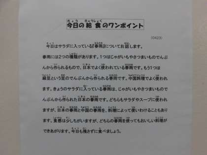 4月23日(火)の給食