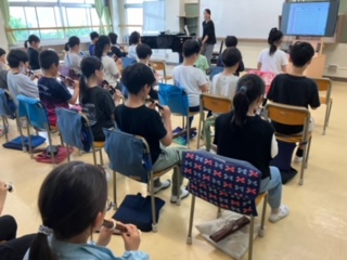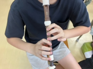 ?リコーダーの練習をしていました。基本の指遣いの確認から始まり、指で穴をしっかり塞いで正しい音を出せていました
