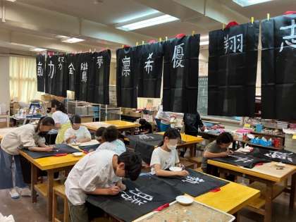 運動会のソーラン節で着用する半被。背中の漢字一文字を描きました。それぞれに想いを背負って踊ります。
