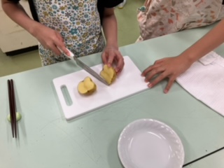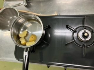 調理実習をしていました。じゃがいもを切って、お湯を沸かして茹でて、塩コショウでいただきます。