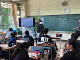 分数のかけ算の学習をしていました。みんなの前で、自分の考えをしっかりとプレゼンしていました。