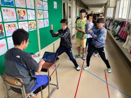 教室前で、細かいところまでしっかりと確認していました。さすが、気合が入っています。