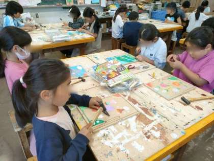 「コンコンくぎ打ちコンコンビー玉」を行いました。初めて釘を金づちで打つ作業に嬉しそうに取り組んでいました。