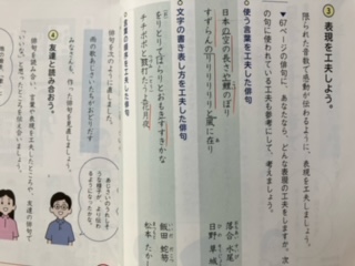 俳句の学習。俳句には季語が必ず入ります。その季語が、春夏秋冬のいつを表すのか、クイズ形式で学んでいました。