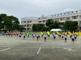 フラッグのダンスのリハーサルでした。色鮮やかなフラッグが、本番で華やかに校庭を彩るのが、今から楽しみです。