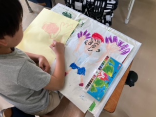 運動会の絵を描いていました。みんなとても楽しそうな感じが出ていて、上手です。