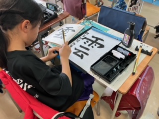 文字のバランスに気をつけながら、習字の学習です。筆遣いがとても上手になっています。