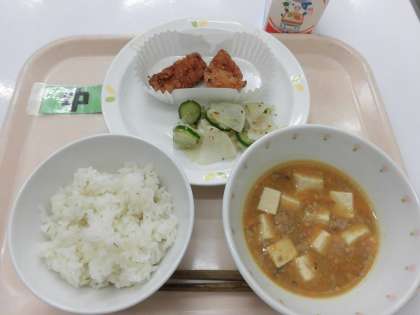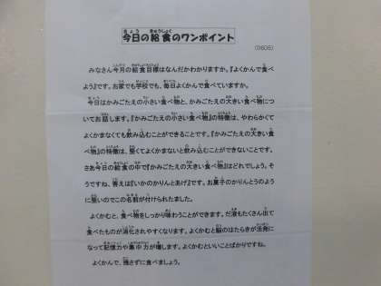 いかは、堅くならないように注意して揚げましたが、そもそも「いか」はよくかまないとなかなか飲み込むことができません。かみごたえのある食品です。今月の給食目標は、『よくかんで食べよう』ですので、今日の給食はよくかんで、残さずに食べてほしいです。